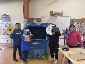 The students put so much hard work and heart into their puppet projects, we had to share it with the school! On May 30th, the class pulled out all the stops and set up the perfect puppet theater venue in the central meeting area of the school. The students made popcorn, set up cozy blankets, and decorated the space to present their work. Despite some pre-show jitters, the room filled with smiles, laughter, and applause as each group presented their show. After the show, the students were buzzing with confidence, relief, and accomplishment.
