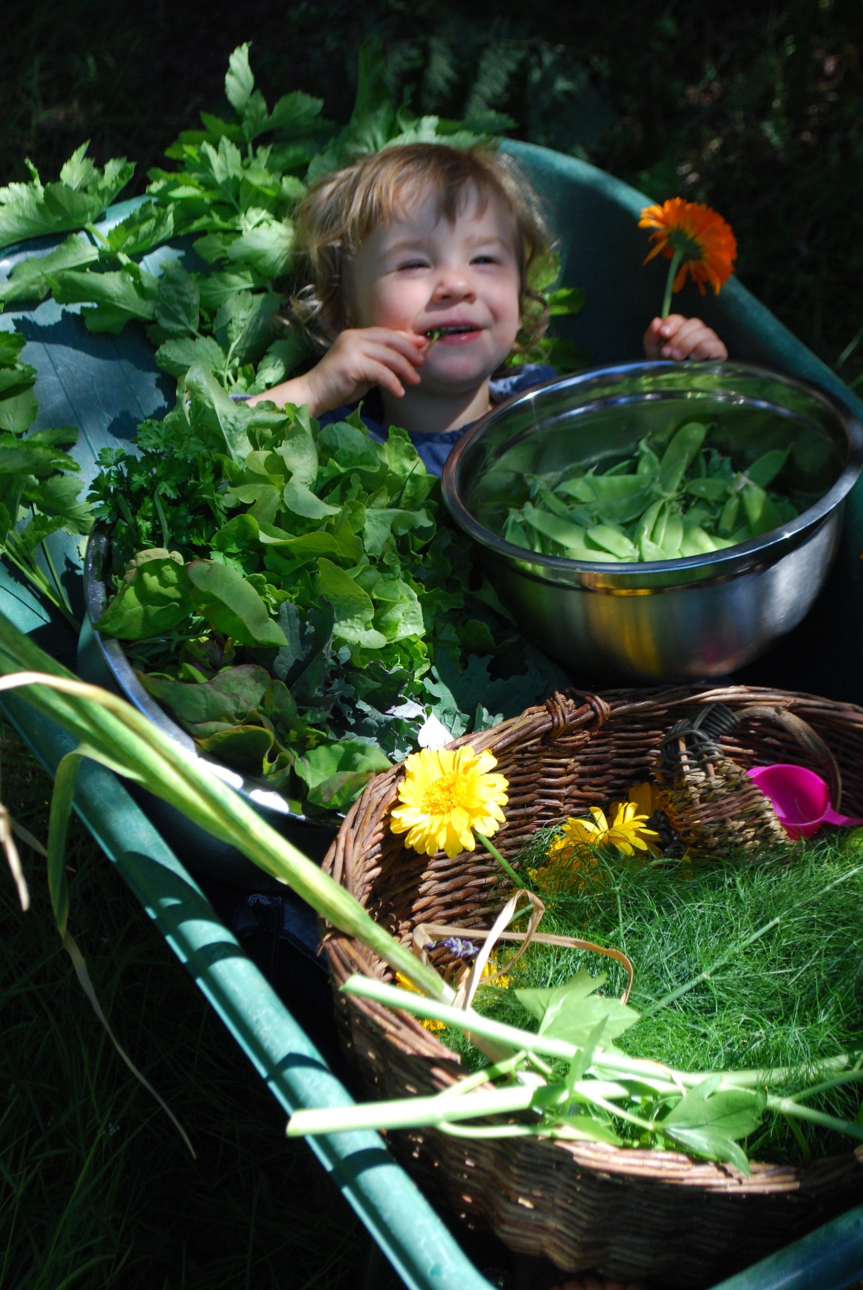 The Galiano Community Food Forest grows between the ridges of Galiano island, on a plateau where the coastal Douglas fir forest opens to the sun before its cascades as untouched old growth toward cliffs and the ocean. The day is ever changing, sun spackled clouds and rain showers. I am here with food forester Cedana Bourne and graced with the playful presence of her two-year old daughter. We are harvesting strange plants from the food forest to bring to Pilgrimme restaurant, also nestled in the forest just down the island where Chef and co-owner Jesse McCleery will transform them before our eyes.